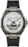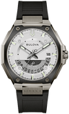With its distinctive architectural design elements, this Bulova Series X men’s watch makes a bold first impression. The gray ion-plated stainless steel case and bracelet embody rugged, modern design while the black HNBR rubber strap features a 3-piece buckle. The white 3-hand dial with date and exhibition window is protected by a curved sapphire crystal and features a full Super-Luminova background with blue glow, contrasting with the green glow of the Super-Luminova hands and markers, glowing brightly in low-light for unrivaled utility. This luxurious contemporary timepiece is water resistant up to 100 meters and is powered by Bulova’s proprietary high-precision quartz Precisionist movement a revolutionary 8-jewel quartz mechanism accurate to seconds per year, and increased resistance to temperature changes, and with a smooth sweeping second hand. Take your precision to the next level with this innovative and stylish timepiece, fusing design and technology.