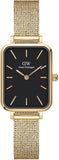 Edges can be very feminine. The Pressed Evergold Black brings it to life perfectly. This gold women’s watch with a square dial looks both delicate and bold thanks to its black watch face. The gold mesh bracelet, crafted from stainless steel with a gold finish, adds a glistening fabric-like texture to this timepiece for a complex wearing experience. So, when your look needs just a nudge to get out of the conventional, choose one of our square women’s watches. Small gold women's watch with a gold mesh watch band and square dial in black.