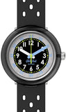 Check out the FIZZ IN BLACK kids watch! It's super cool with its black and silver design, plus pops of blue and yellow. Perfect for learning to tell the time and a great gift for any stylish kid.